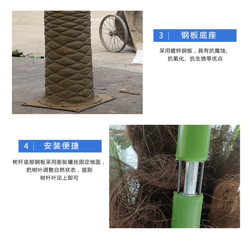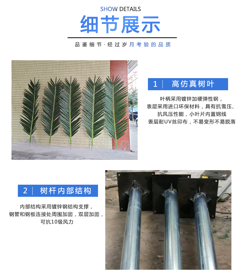 【樹桿材質(zhì)】:國際標(biāo)準(zhǔn)鍍鋅鋼構(gòu)+高性能環(huán)氧樹脂+玻璃纖維